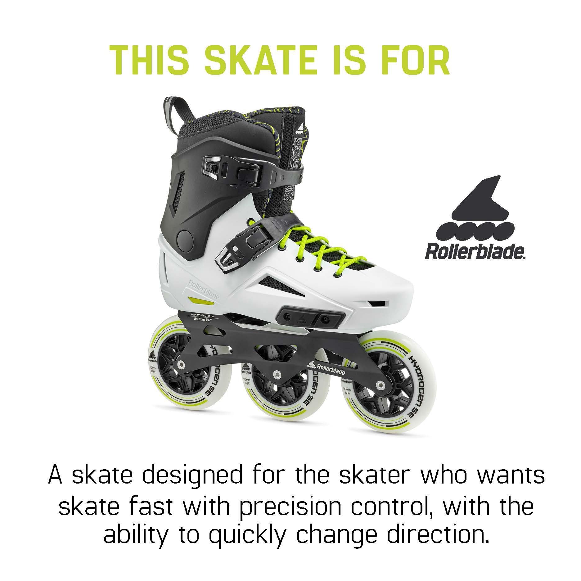 Details: Looking for a versatile and fast urban skate? The Lightning 110 checks all the boxes. Built on the cornerstones of support, comfort and versatility, Lightning is your go to skate. Designed for all skating environments, the Lightning 110 provides an anatomical and sublimated liner paired with top eyelets and a PSI footbed for ideal support. Molded-boot comfort and a durable shell provide performance and speed. This skate is an exceptional combination of premium fit, optimal support and advanced maneuverability, whether commuting or just cruising. Generous padding cushions the feet, sublimated lining adds eye-catching details , improved wrapping, more breathability and shock-absorbing padding in the heel. This skate comes paired with the perfectly positioned 3x110 frame set up.