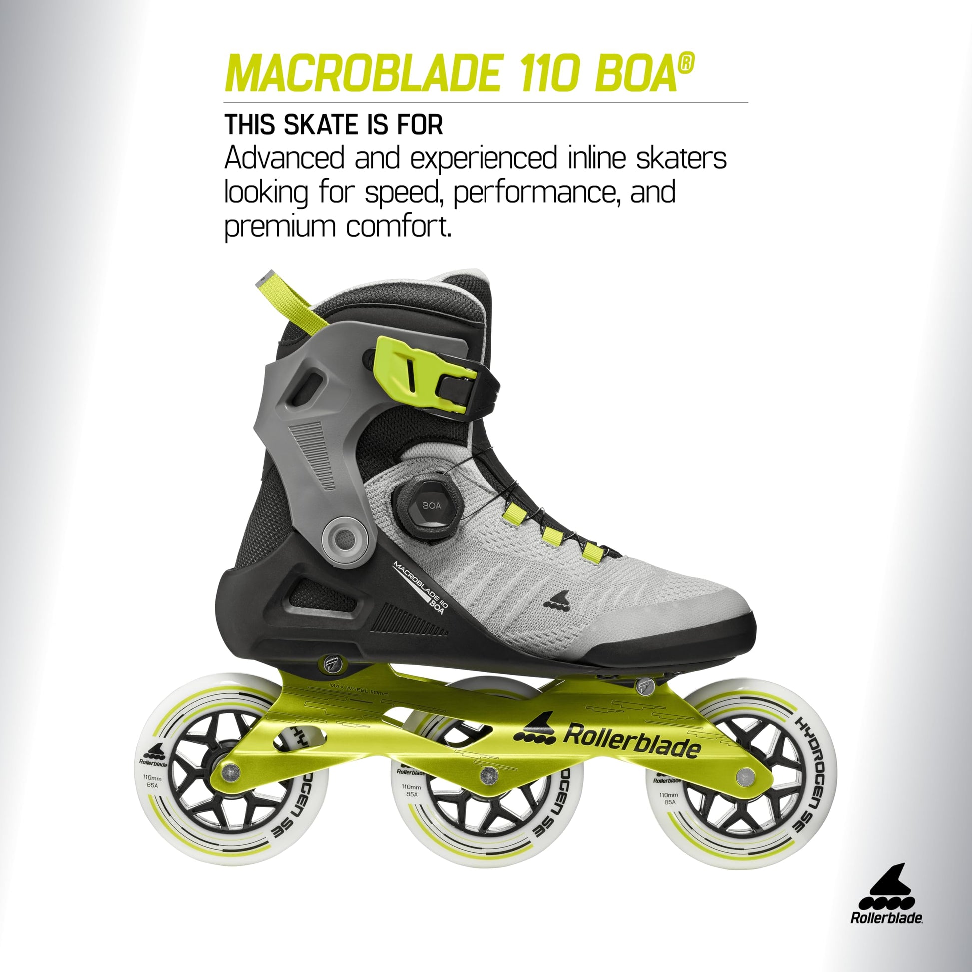 Rollerblade Macroblade 110 BOA® Unisex Adult Fitness Inline Skate, Black/Grey/Lime, Performance Inline Skates